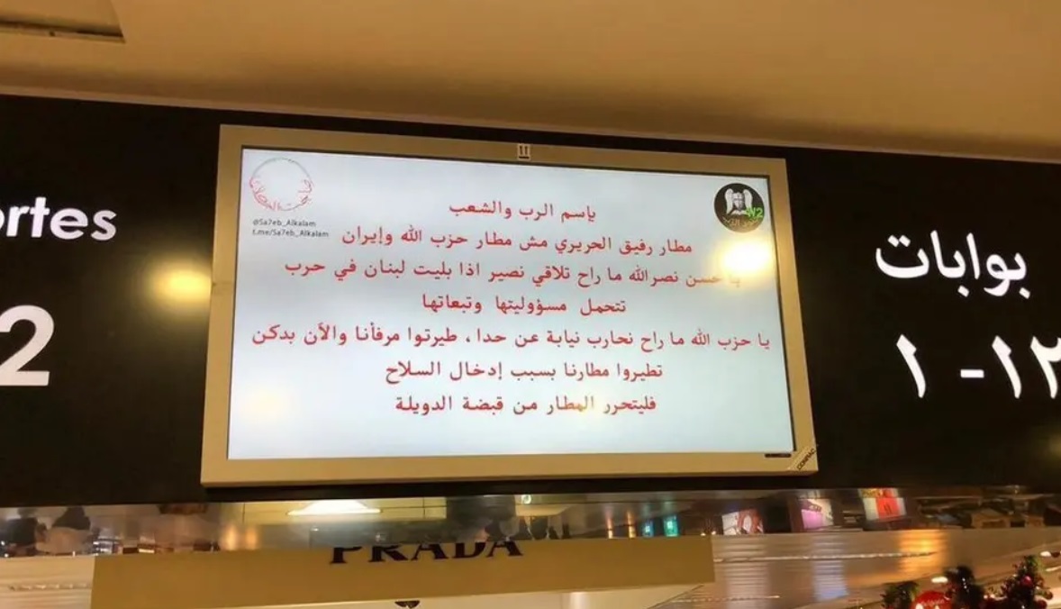 The attack targeted the departure and arrival screens in the airport halls, bearing messages directed at Hezbollah. The text, signed by “Lord and the People,” called for the airport to be freed from the state’s control.