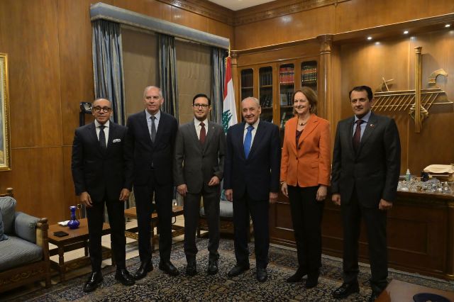 House Speaker, Nabih Berri, on Tuesday received at the Second Presidency in Ain el-Tineh, the Ambassadors of the Quintet Committee: Ambassador of the Kingdom of Saudi Arabia, Walid Bukhari, Ambassador of Qatar, Sheikh Saud bin Abdulrahman bin Faisal Al Thani, Ambassador of France, Hervé Magro, Ambassador of Egypt, Alaa Mousa, and the Ambassador of the United States of America, Lisa Johnson.