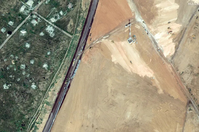 Satellite images have revealed that Egypt is bulldozing a sizable expanse of land, concurrently with the construction of a barrier in the buffer zone between Egyptian territory and the city of Rafah in the southern Gaza Strip. The images provided by Maxar Technologies depict a significant deployment of bulldozers and construction machinery near the Egyptian-Gaza border.