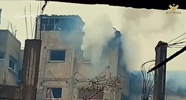 In Khan Younis,, Al-Quds Brigades fighters targeted three Zionist military vehicles and detonated a building housing an Israeli military force, killing or injuring all the enemy soldiers.