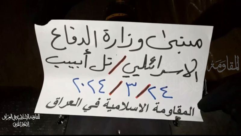 The Islamic Resistance in Iraq announced that its mujahideen targeted the headquarters building of the Ministry of Defense of the Zionist entity in the occupied territories at dawn on Sunday, 3/24/2024, using a drone.