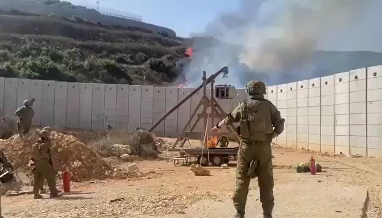 The video below, circulated on social media, shows Israeli occupation soldiers launching catapult to make fires on the Lebanese side.