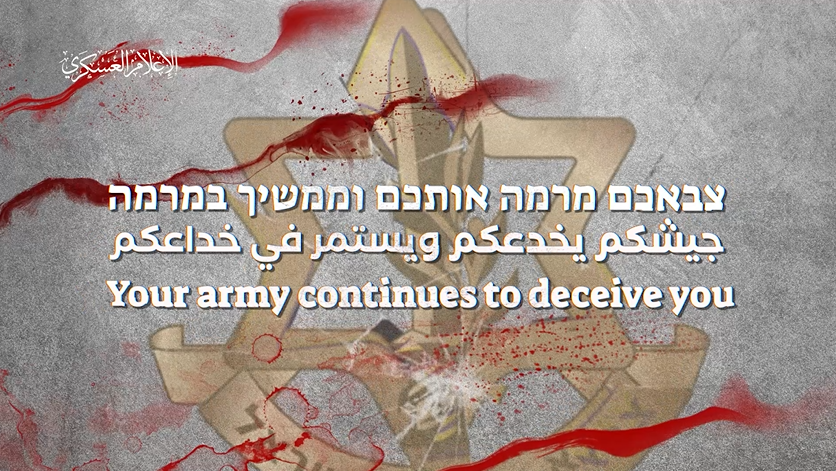 “Your army killed two of your captives in the air strike on the city of Rafah a few days ago,” is the caption used to illustrate the video.
