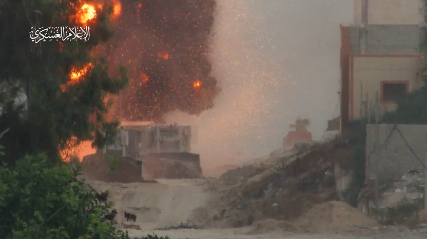 The following video shows Al-Qassam fighters confronting enemy vehicles advancing in the Tel Al-Hawa neighborhood of Gaza City.