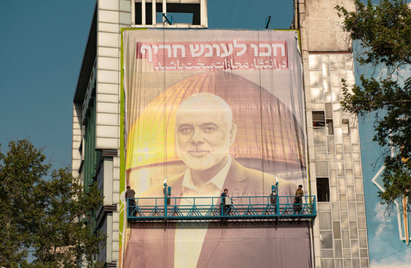 A building-sized poster went up this week in Tehran Palestine Square vowing harsh retaliation over the assassination of Hamas Politburo Chief Ismail Haniyeh in the Iranian capital.