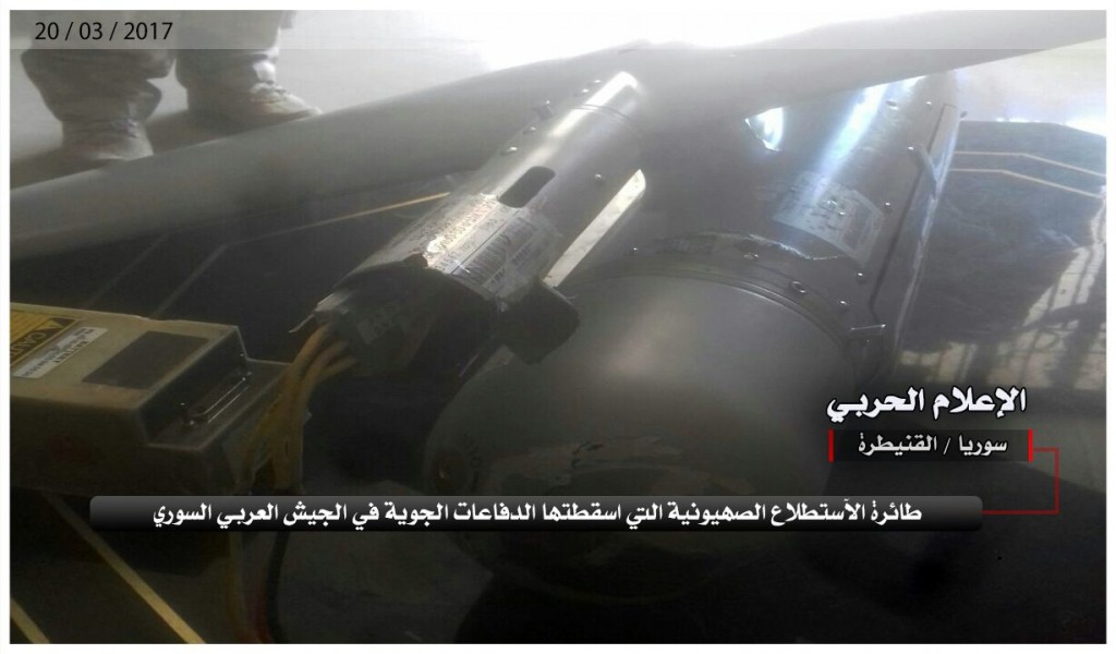 Photos show how the Syrian army downed an Israeli drone which had violated Syria airspace over the southern province of Qunietra.