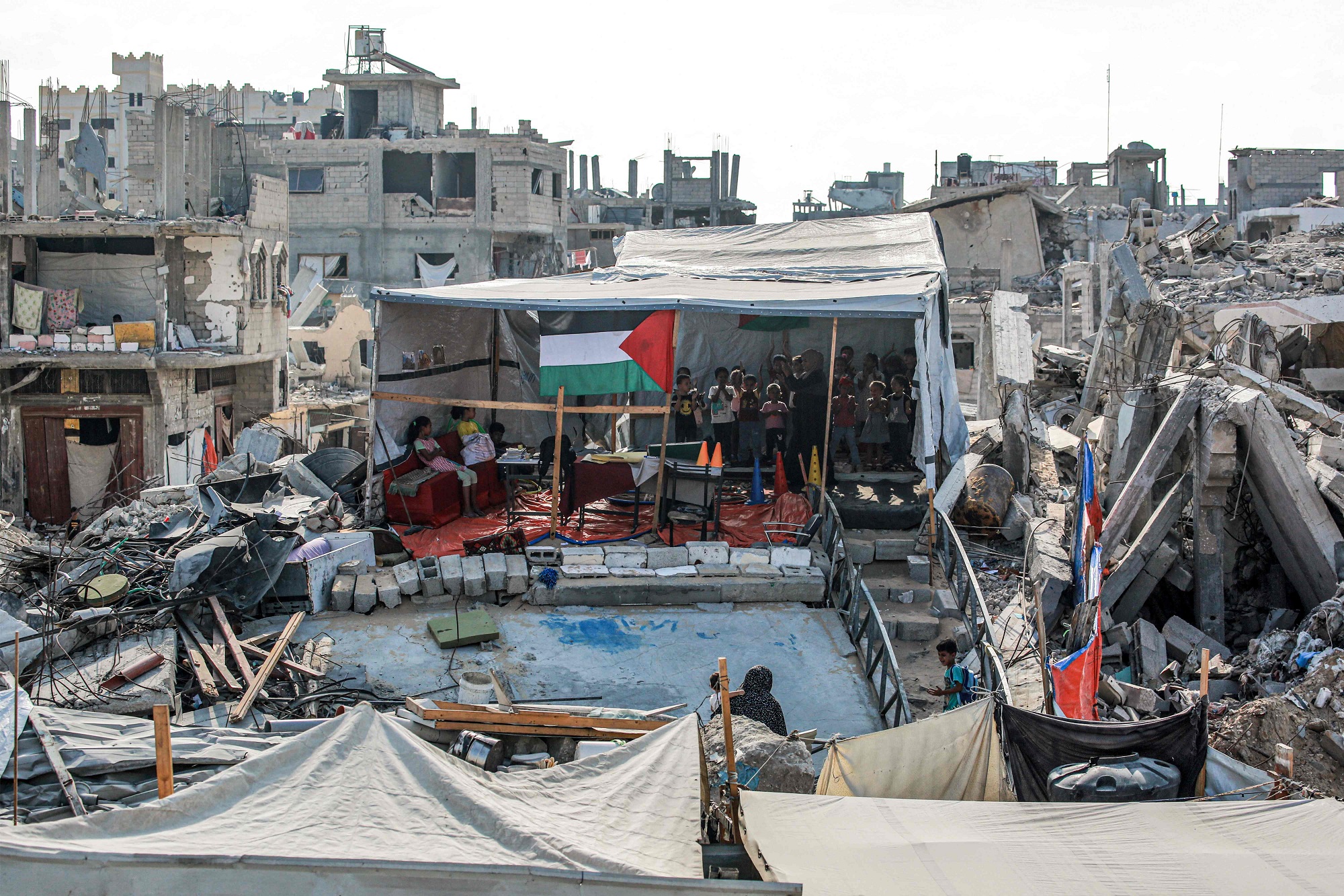 Schools in Gaza lie ruins or have been turned into shelters for families displaced by the brutal Israeli war that has killed more than 40,000 people including students and teachers.