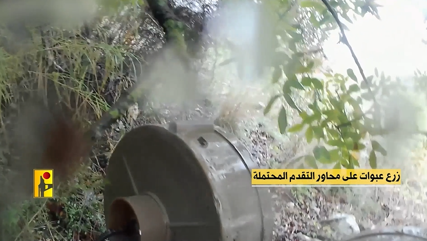 The footage shows how Hezbollah fighters planted explosives on the possible infiltration paths used by the enemy before detecting the movement of the Zionist soldiers and detonating the IEDs.