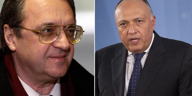 Egyptian Foreign Minister Sameh Shoukry and Russian President’s Special Representative for the Middle East and Africa, Deputy Foreign Minister Mikhail Bogdanov discussed the need to support the efforts aimed at reaching a political solution to the crisis in Syria.