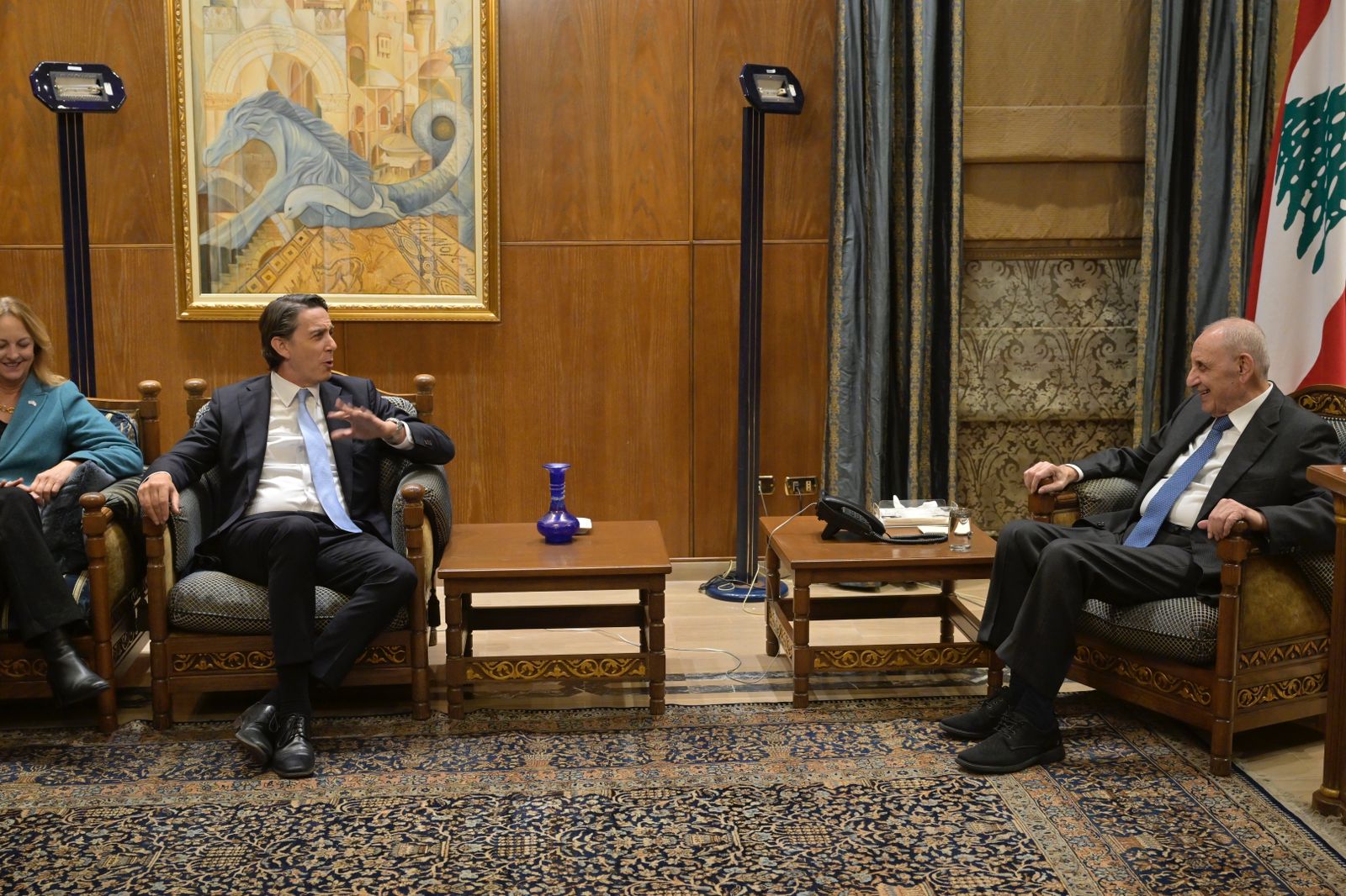 The US envoy and his accompanying delegation then visited House Speaker Nabih Berri at Ain El-Tineh Palace. Hochstein pledged continued commitment of the United States and the international community in support of the Lebanese Armed Forces as they implement the ceasefire agreement by ensuring security in the south and throughout Lebanon, noting that the withdrawals will continue until all Israeli forces are completely outside Lebanese territory.