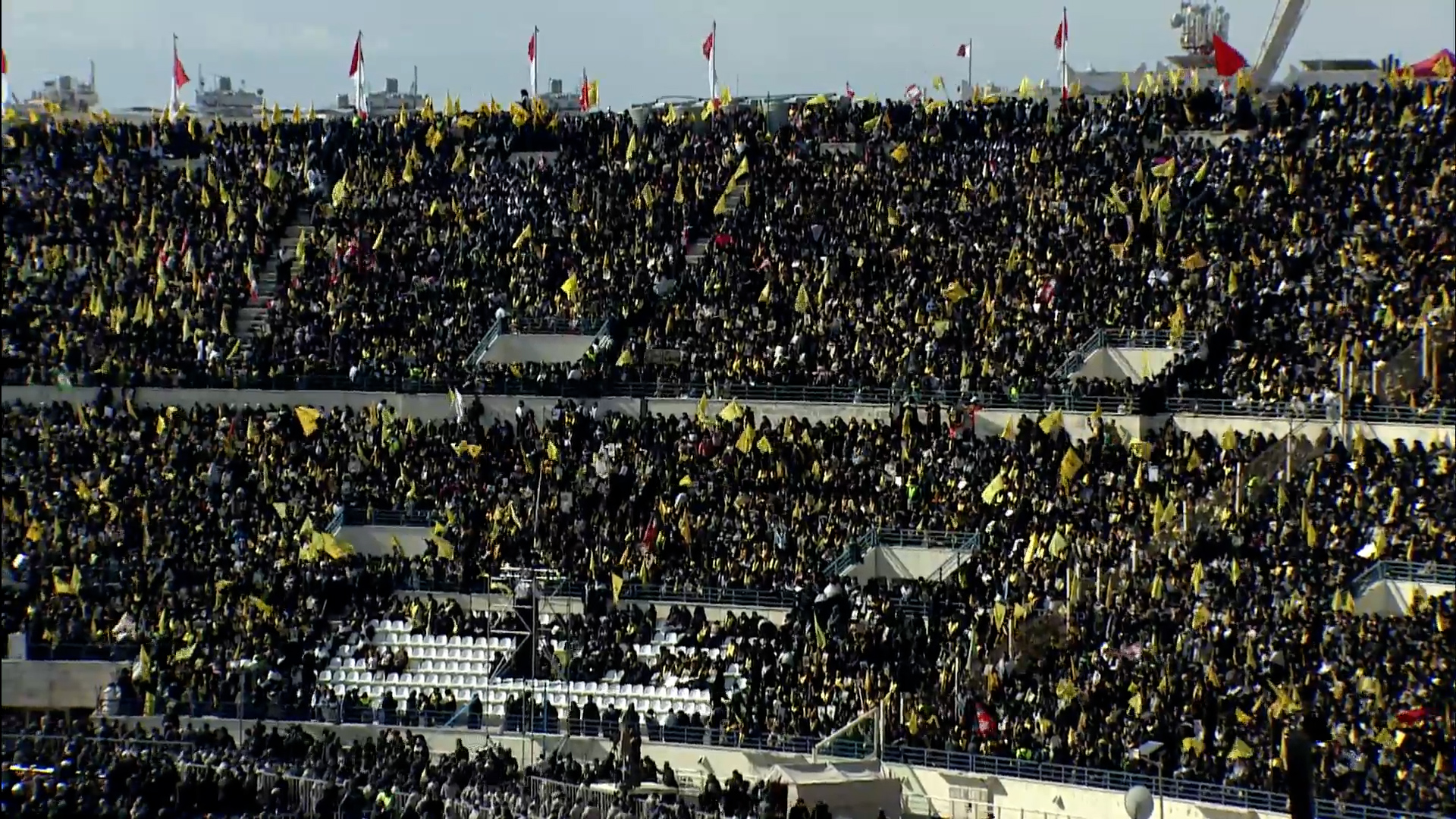 Crowds flooded Camille Chamoun Sports City Stadium in Beirut on Sunday to express loyalty to late Hezbollah leaders Sayyed Hasan Nasrallah and Sayyed Hashem Safeiddine and to pledge allegiance to new leadership of the Lebanese resistance party.