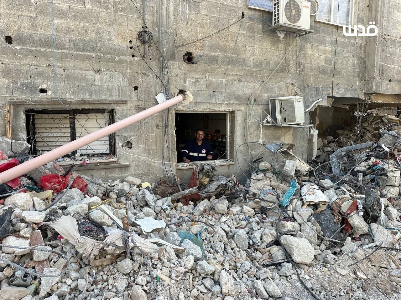 Israeli occupation forces blew up one of the gates of Al-Nasr Mosque in Nur Shams, raided the Al-Mahjar neighborhood amid heavy gunfire, and set fire to a house in Al-Manshiyya.