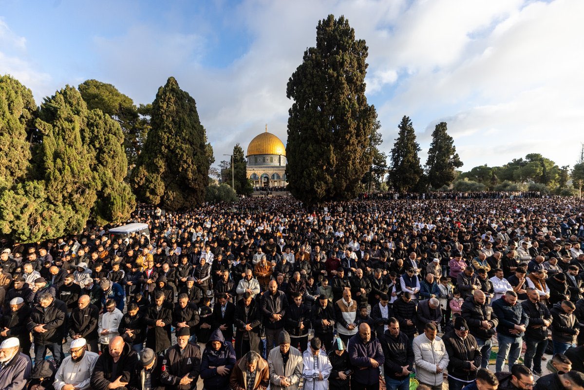 Despite severe Israeli occupation restrictions, 120,000 Palestinians performed Eid Al-Fitr prayers at Al-Aqsa Mosque on Sunday, March 30. Throughout the holy month of Ramadan, Israeli occupation forces imposed harsh measures that significantly reduced the number of worshippers allowed into the mosque.