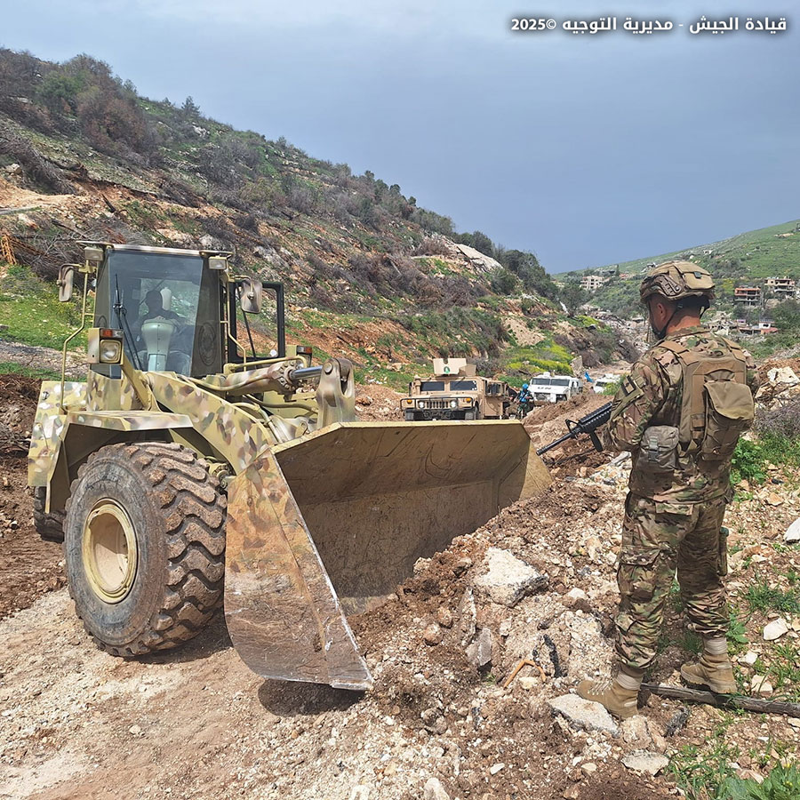 The Lebanese Army issued a statement in which it indicated that one of its military units removed newly constructed earthen barriers erected by the Israeli enemy in the town of Adaisseh-Marjayoun, and reopened the road leading to one of the town’s hills, in coordination with the United Nations Interim Force in Lebanon (UNIFIL).