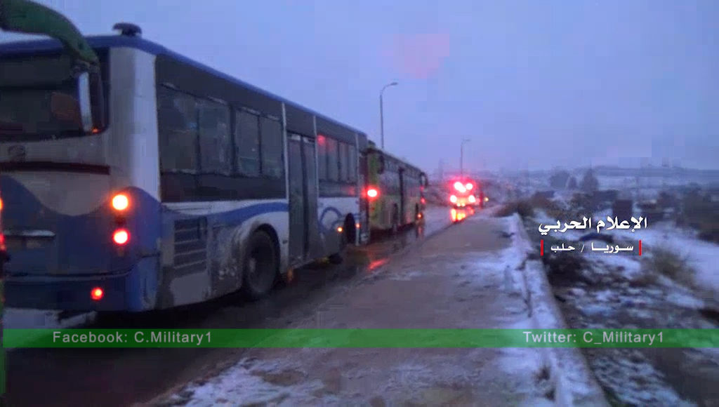 A large convoy of buses from the terrorist beseiged towns of Foua and Kefraya reached the edge of the militants-held transit point of Rashidin outside second city Aleppo.