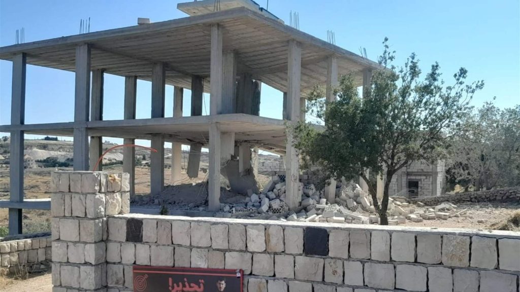 The Israeli occupation forces also detonated a house in Houla border town, and left a banner which provokes against the owner of the house.