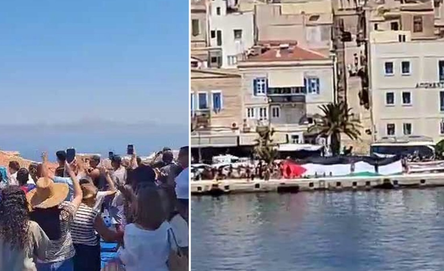 Israeli passengers on a cruise ship docked on the island of Syros in Greece were unable to disembark due to large pro-Palestinian protests at the dock on Tuesday, out of concern for passenger safety.
