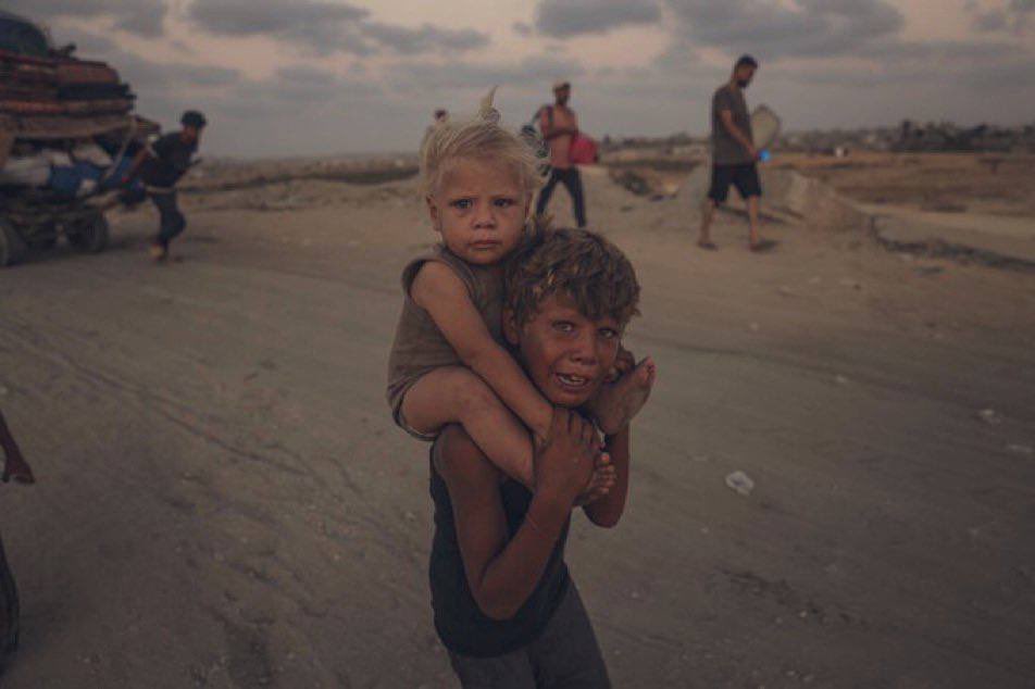Heartbreaking — a scene that captures the torment of innocent children, caught in Israel’s devastating war on Gaza and the endless agony of displacement. pic.twitter.com/46L32SVwII