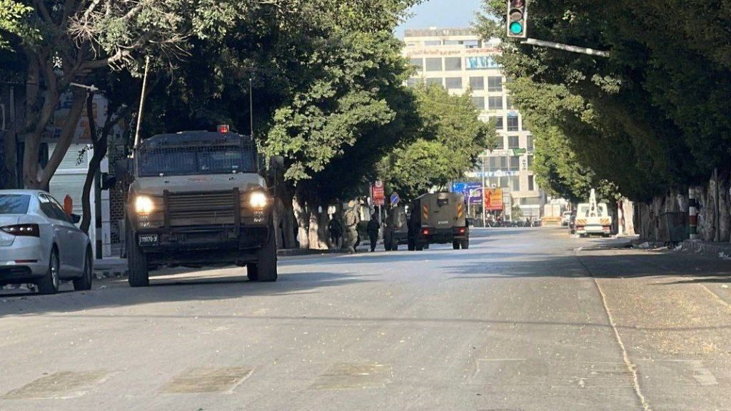 According to local sources, numerous occupation military vehicles invaded neighborhoods across the Nablus governorate. Occupation soldiers were reported breaking down the doors of shops on Faisal Street and firing live ammunition and stun grenades in the Old City. The raid extended to the grounds of the National Hospital, where a number of young men were reportedly detained.