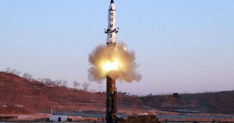 Leader Kim Jong-Un personally oversaw the test, it said, and “hugged officials in the field of rocket research, saying that they worked hard to achieve a great thing”.