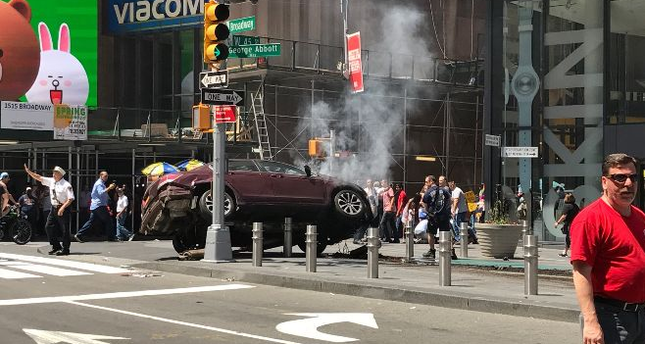 A Reuters witness said at least 10 people were being treated for injuries on the ground after the collision at the Midtown Manhattan tourist site.
