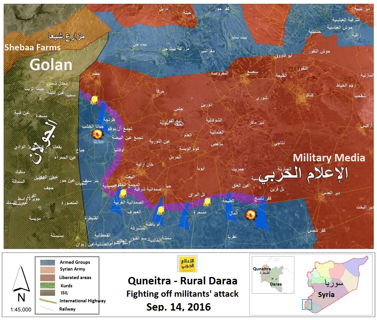 The Central Military Media Bureau of the Islamic Resistance released on Thursday new map showing the conduct of military operations against armed groups in the rural areas of Quneitra and Daraa, south of Syria.