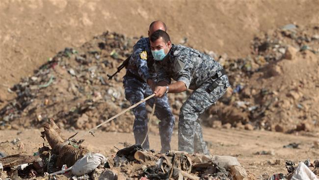 Major Shaker Ghaleb told Basnews news agency on Friday that soldiers from the 16th Division of the Army made the grisly discovery in al-‘Ayadiya district, which lies 11 kilometers northwest of Tal Afar, as they were clearing the area of last remnants of ISIL terrorists and explosive devices left behind by the Takfiris.