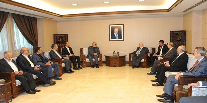 The Syrian Deputy Prime Minister, Foreign and Expatriates Minister Walid al-Moallem on Wednesday met Chairman of the National Security and Foreign Policy Committee at the Iranian Shura Council Alaeddin Boroujerdi and the accompanying delegation.