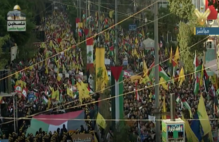 Hezbollah held on Monday a crowded rally in the southern suburb of Beirut (Dahiyeh) in support of Al-Quds against US decision to recognize it as the capital of the Zionist entity.