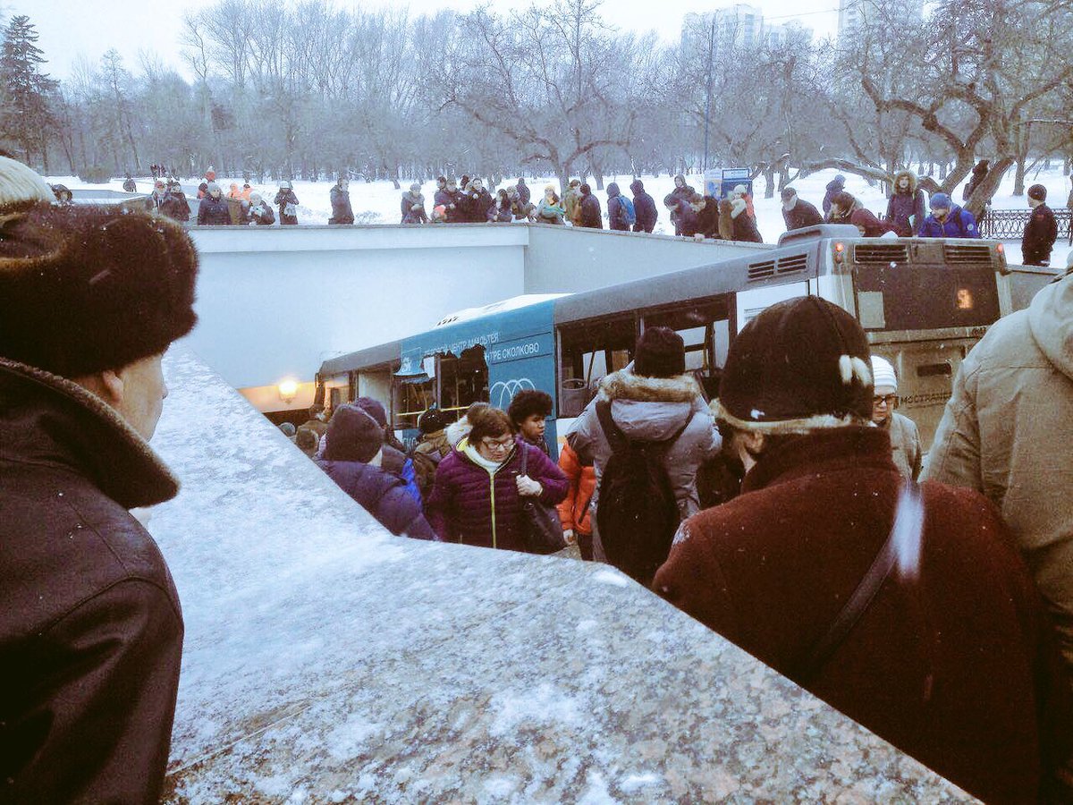 “According to preliminary information, a bus drove into the underground passage at the metro station Slavyansky Bulvar,” the source said.