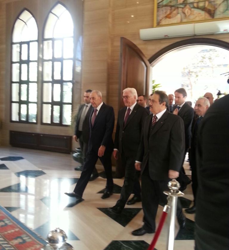 The Lebanese House Speaker, Nabih Berri, met, at his Ain-el-Tineh residence on Tuesday, with German President Frank-Walter Steinmeier, who he thanked for the assistance Germany is providing to Lebanon.