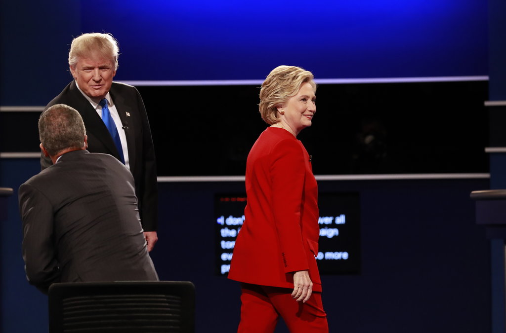 It only took 90 minutes, but Hillary Clinton and Donald J. Trump fell into a rut that reinforced both of their stereotypes. On most issues, Mrs. Clinton relaxed into wonkery – especially on national security – and delivered wooden lines about eagerly awaiting fact-checks. Mr. Trump’s reactions were a mix of favored rally themes and stream of consciousness boasts, and he interrupted with tangents and confusing non sequiturs, often in praise of himself.