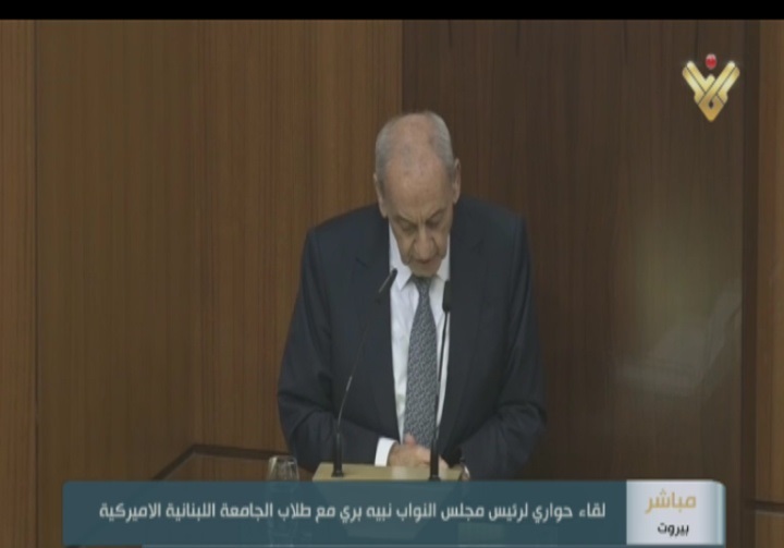 Lebanon’s House Speaker Nabih Berri addressed on Saturday at the parliament an academic delegation from the Lebanese American University (dean and students), initiating the development of the electoral system and working to reduce the voting age, immediately after holding the [parliamentary] elections.
