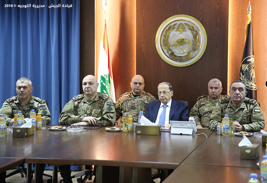President Michel Aoun on Monday visited the command of the Lebanese Armed Forces in Yarze and met with military chief General Joseph Aoun over the current security situation in the country and the LAF various missions and needs.