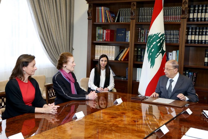 President of the Republic, General Michel Aoun, on Friday asked of the Executive Director of the United Nations Children’s Fund (UNICEF), Ms. Henrietta Fore, to swiftly address the simmering issue of Syrians refugees in Lebanon “in a bid to alleviate their sufferings, and simultaneously facilitate their gradual return to safe zones in Syria.”