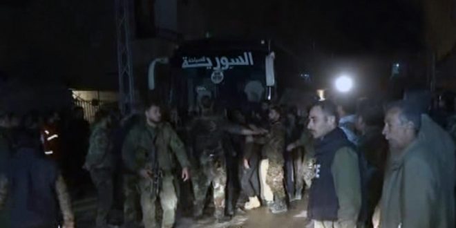 SANA’s reporter said that a number of militants arrived at the last point of al-Wafideen Camp corridor at the outskirts of Gouta, where a bus was waiting to transport them outside the area.