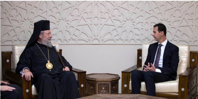 President Bashar Assad on Monday received Archbishop of Nova Justiniana and All Cyprus Chrysostomos II and the accompanying delegation.