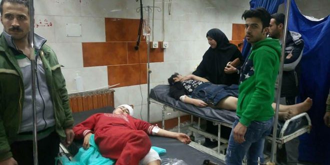 The source added that terrorists positioned in their last enclaves of Eastern Gouta fired a rocket shell at al-Jalaa sports complex in Damascus, injuring a woman and five children, as well as causing material damage to a number of parked cars.