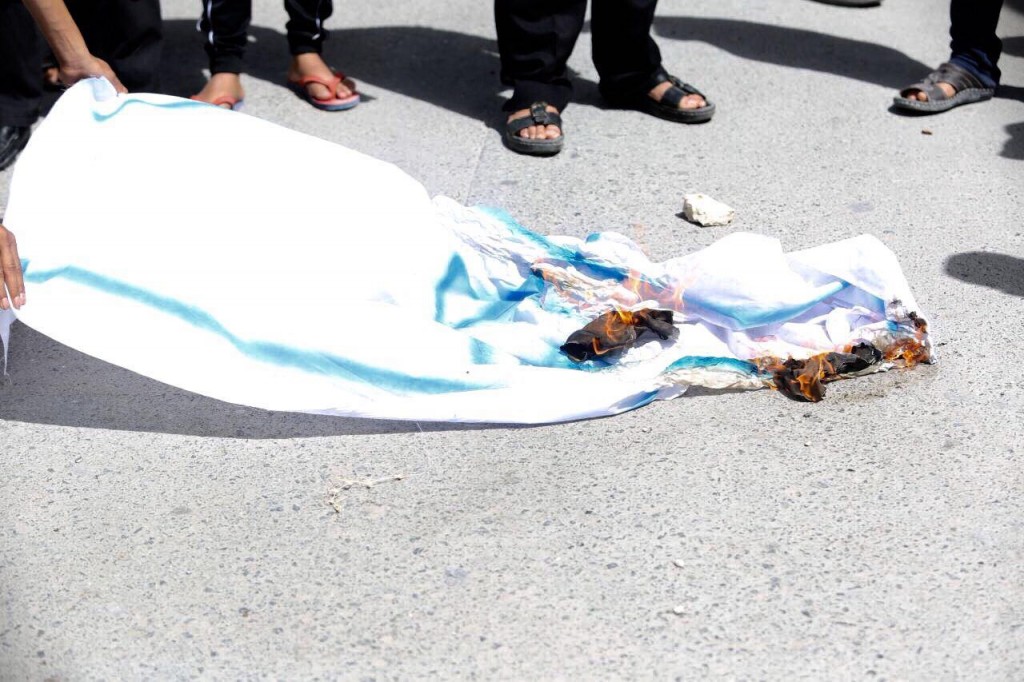 The demonstrators tread over and burnt the Israeli flag, and chanted slogans denouncing the monarchy’s regime and its practices, which are still banning the performance of central Friday prayers in Bahrain.