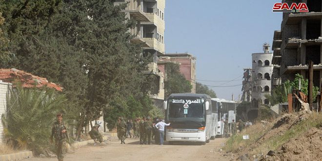 During the past two days, 46 buses carrying hundreds of terrorists and their families exited from the three towns to move towards northern Syria in the framework of an agreement between the Syrian government and terrorists.