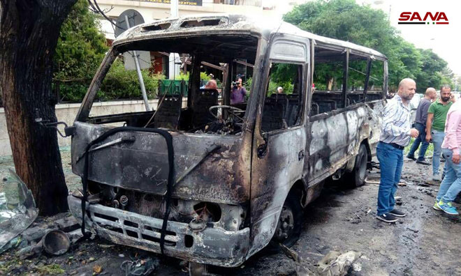 SANA news agency reported that two civilians were martyred and 14 others were wounded in terrorist attacks on Damascus Tower and Maysat Square”.