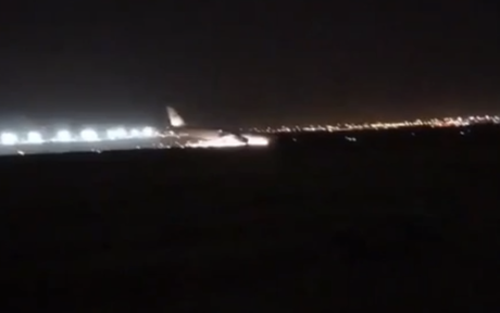 Footage posted online showed the plane leaving a trail of flame along the runway as it skidded on its nose before screeching to a halt.