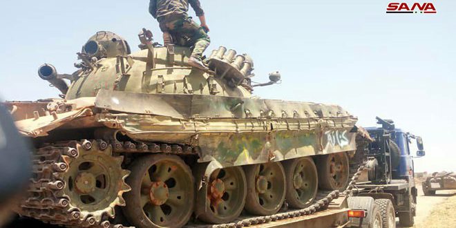 SANA’s reporter in Daraa said that the received weapons included a tank, BMP vehicle and a 57 mm cannon, adding that the operation will continue until all weapons and ammunition in the possession of armed groups are completely handed over.