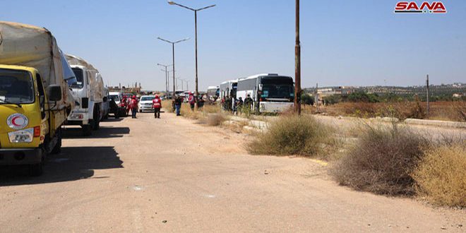 SANA news agency said that ten buses carrying 407 terrorists along with their families moved towards northern Syria accompanied by cars affiliated to the Syrian Arab Red Crescent (SARC).