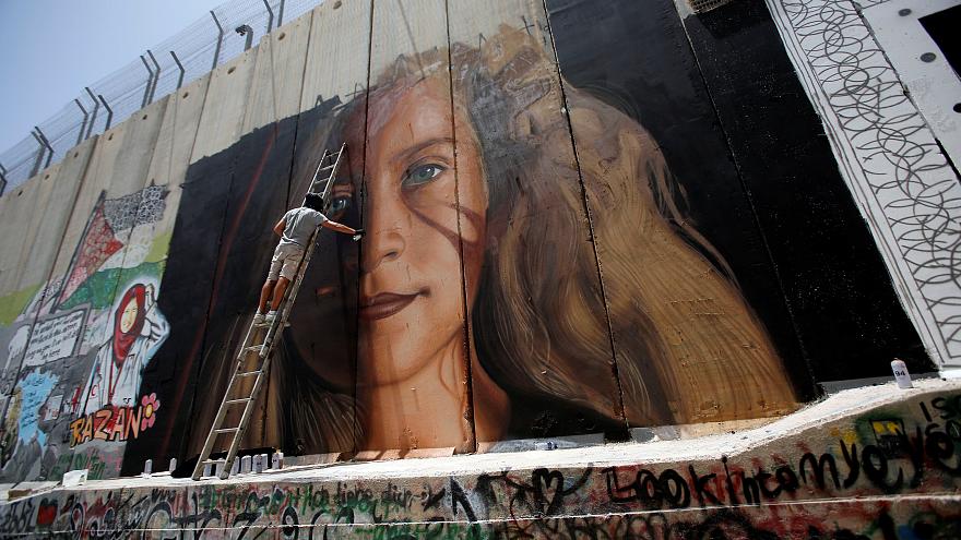 The roughly four-meter (13 foot) image near Bethlehem in the West Bank depicts Ahed Tamimi, 17, who was released from prison Sunday after an eight-month arrest for slapping two Israeli soldiers, an episode captured on video.