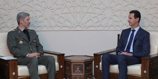 Syrian President Bashar al-Assad received on Sunday Iranian Defense Minister Brigadier General Amir Hatami who is heading a senior military delegation as part of a two-day visit.