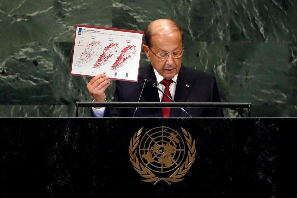 President Michel Aoun on Wednesday delivered Lebanon’s speech before the UN General Assembly, categorically rejecting any naturalization scheme for the Palestinian and Syrian refugees in the country.