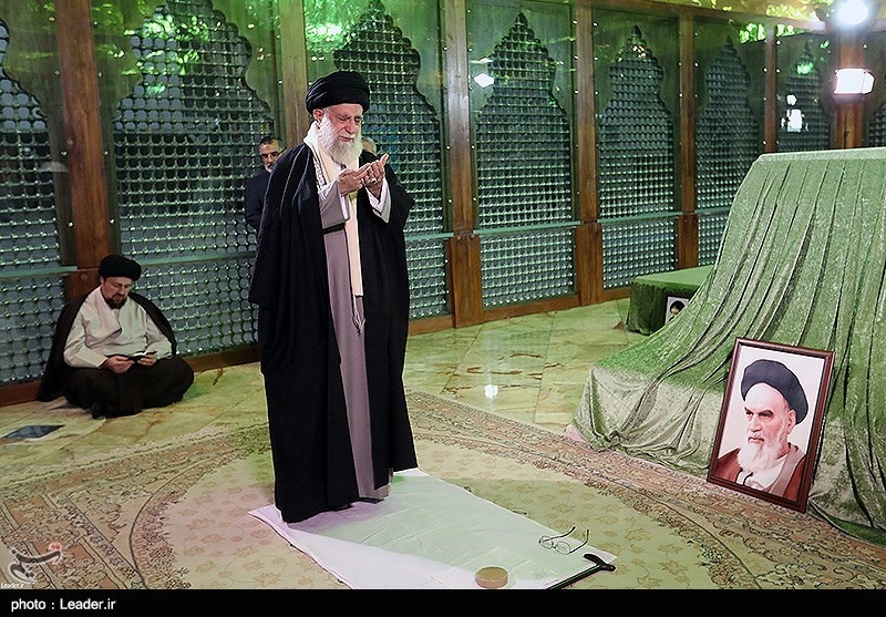 The Leader also paid homage to Iranian martyrs laid to rest in Behesht-e Zahra Cemetry in southern Tehran including the martyrs of the 1980-1988 Iraqi imposed war on Iran and a 1981 bombing in which 72 officials of the Islamic Republic were killed.