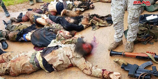 Earlier, SANA reporter said that the army responded to terrorist groups’ violations of the de-escalation zone agreement in Idlib as they attempted to sneak form the direction of Lahaya/ Ma’rkebeh in northern Hama.