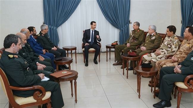 The Syrian head of state and the top brass also discussed field developments in Syria and enhancement of coordination among the threesome nations towards a more successful anti-terror battle.